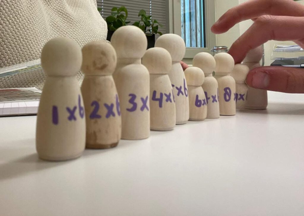 De tafel van 6 met poppetjes, het antwoord staat er onderop…